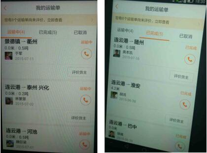 无独有偶,最近许多运满满用户爆料自己的运满满APP客户端中出现了大量自己不知道的“幽灵交易”订单,非本人操作。这些订单来自各种不同的出发地和目的地,不符合运输规律,同时货运信息非常奇怪,如下图中的”0.0米“和”0.5吨”情况,均是非常可疑的订单。